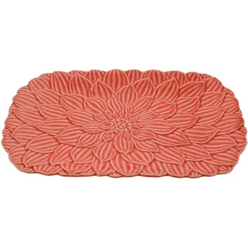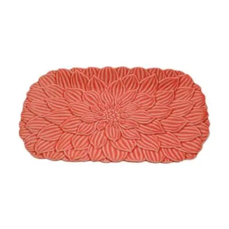 Contém 01 Travessa Porcelana Retangular Daisy Coral Rojemac